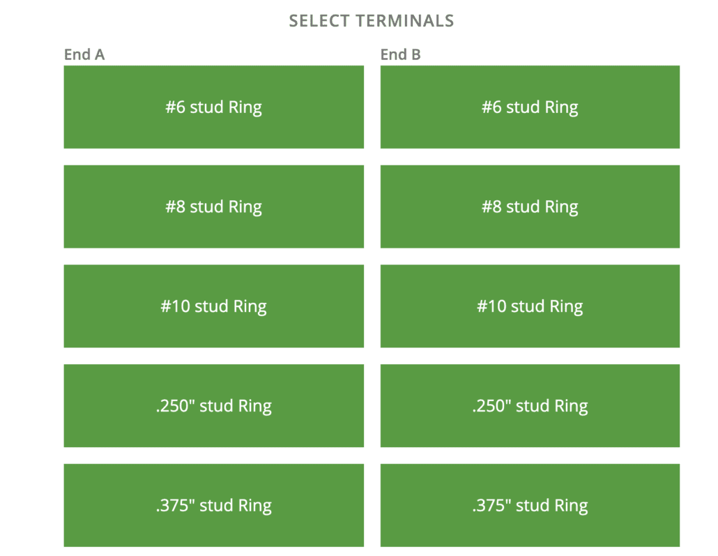 3) A and B-Side Terminal Selection: Side A and B are both offered in five sizes. Simply choose the correct size needed for the job.