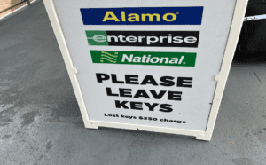 Recently while returning a rental car, I took note of all of the signs declaring “Please leave your keys in car”.