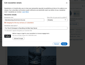 However, this was after discovering that LinkedIn does not allow you to change the title of your newsletter.